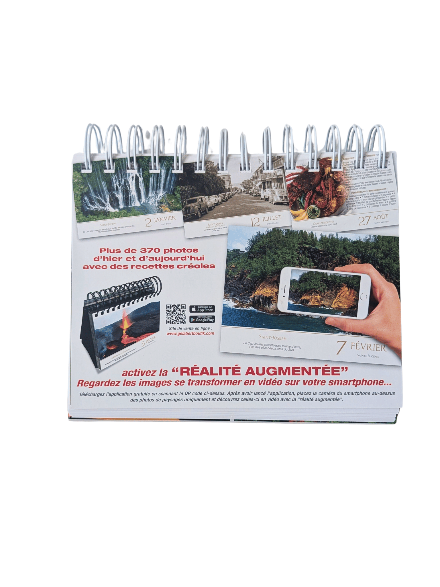 Calendrier perpétuel de La Réunion avec réalité augmentée, photos de Serge Gélabert et recettes créoles. Une expérience unique entre tradition et innovation !</p>
