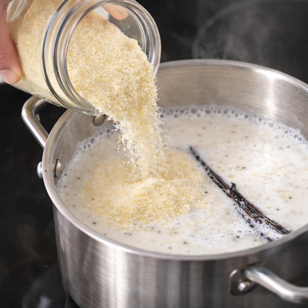 Douce, réconfortante et subtilement parfumée, cette crème de semoule au galabé et à la vanille Bourbon de La Réunion met à l’honneur deux trésors du terroir réunionnais.